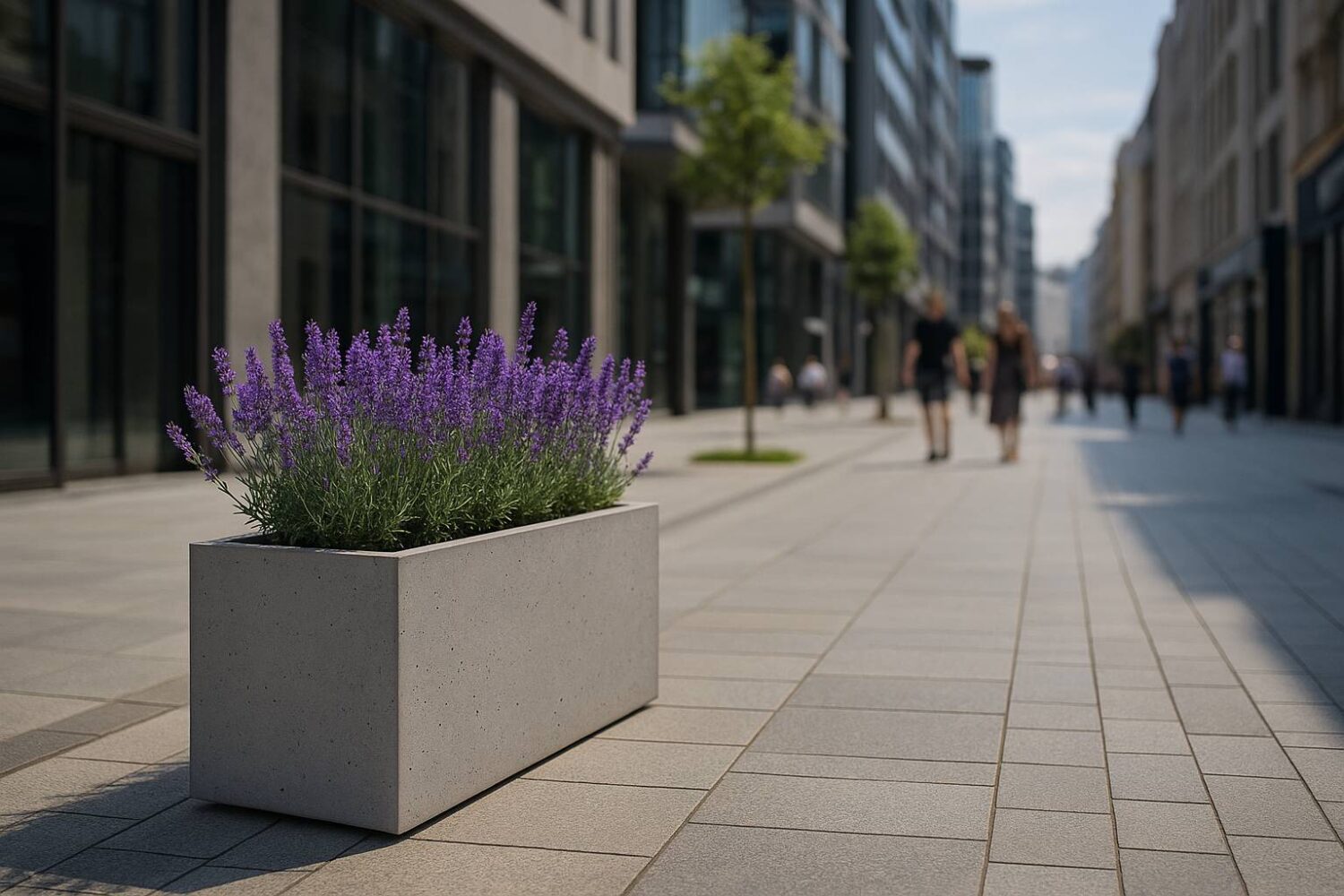 Elegancka donica betonowa Basso 100×30×40 – niska, smukła, idealna do nowoczesnych tarasów i ogrodów.